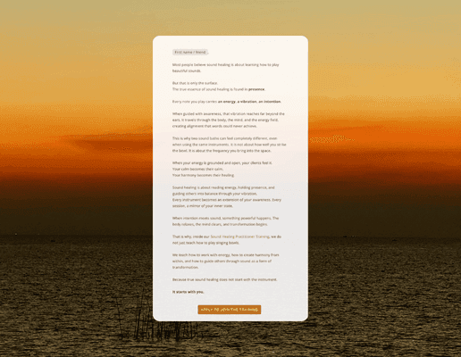 "Antonio built our website from scratch and created the full online flow for our sound healing training. He helped us turn an in person training into a successful online program, generating over $30,000 in sales. Everything feels clear, aligned, and easy to manage."